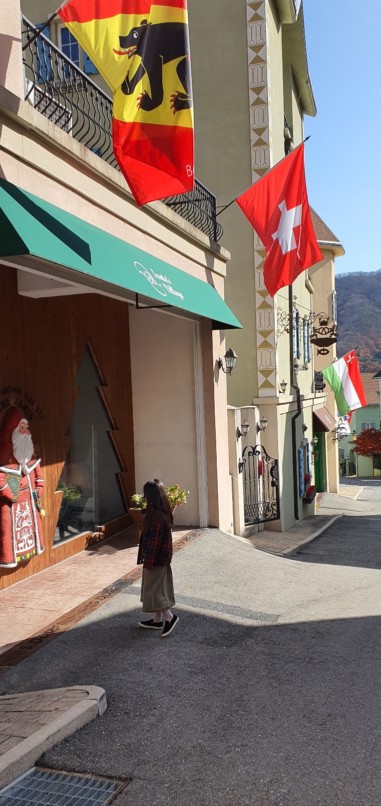 사진에 보이는 이 길을 중심으로 한쪽에는 주민들이 사는 집들이 위치해 있었고, 다른 한쪽은 치즈박물관, 와인박물관, 초콜렛박물관, 산타빌리지, 스위스 테마관 등등 각각의 테마로 구성된 집들이 있었습니다.집안으로 들어가면 재미있고 다양한 볼거리와 포토존들을 보실수 있으니 멋지고 이쁜 사진들 찍어가시면 좋을것 같습니다.