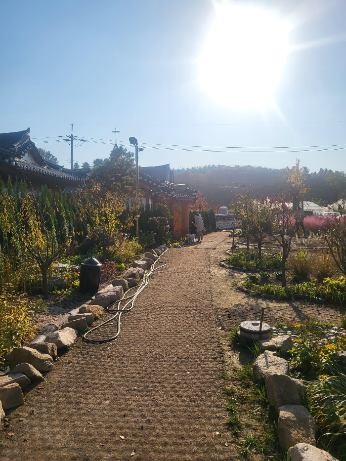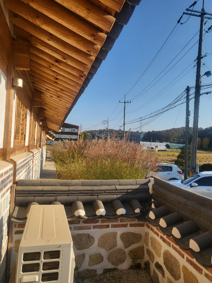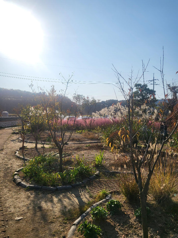 주차하면 바로 핑크뮬리가 있는 정원과 한옥대문이 보여요. 주변에 큰 건물들도 없고 정말 한적하고