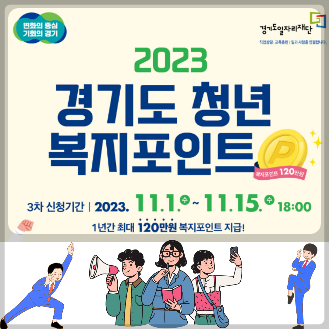 경기도 청년복지포인트 알고 계신가요?경기도 소재중인 기업에 재직하는 청년 근로자 분들에게 지원되는 사업입니다. 1년간 경기도 청년복지포인트를 무려 120만원이나 지급해 주는 만큼 놓치