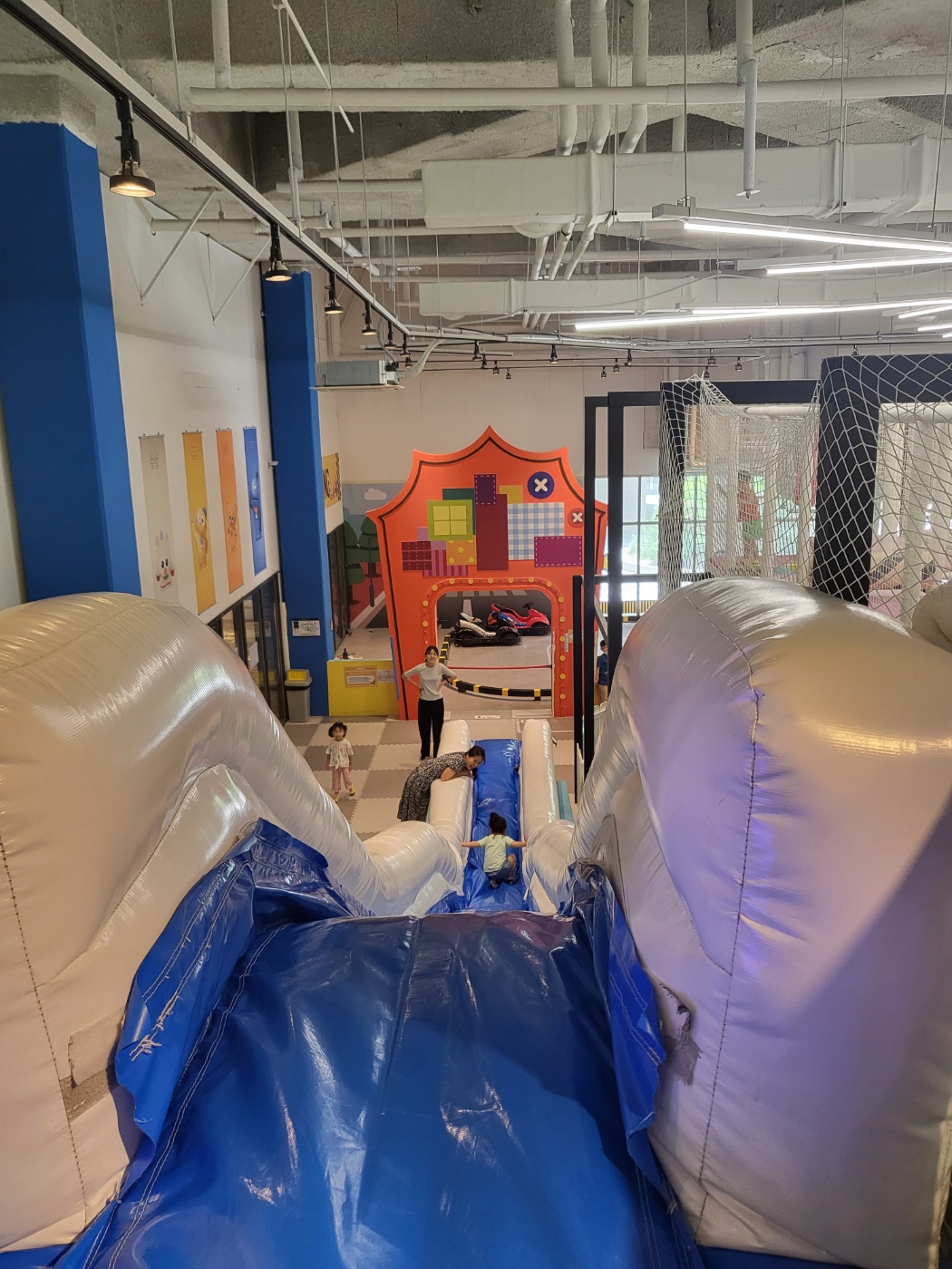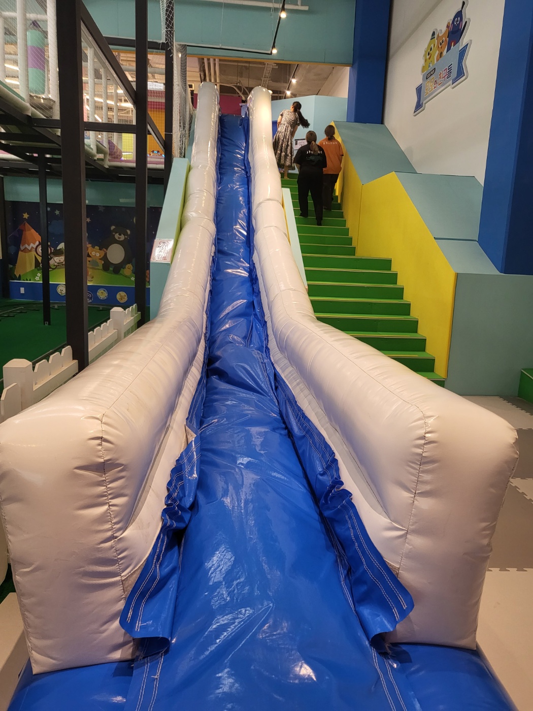처음 들어왔을땐 솔직히 자세히 이런저런 검색등을 하고 온건 아닌터라 생각보다 작다고 생각해서 조금실망했습니다. 헌데 메인은 한층을 더 내려가면 있었다는 ㅋ양쪽으로 계단이 있고 그 밖에 중앙에 동글동글 미끄럼틀과 에어바운스 미끄럼틀등을 통해 내려갈수 있더라구요.에어 바운스는 시간제한 그런게 없으니 언제든 탈수 있었습니다.^^