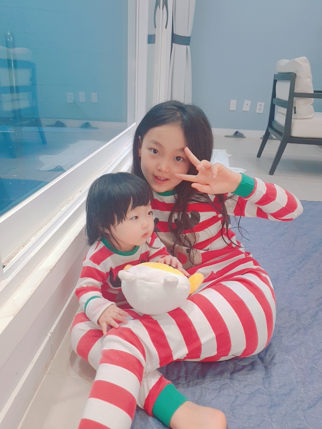 숙소 도착하여 사진찍으며 즐기는 우리 가족