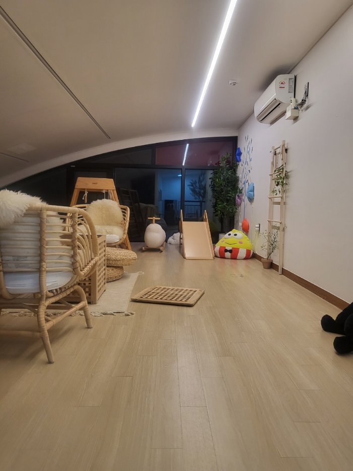 신나게 놀수있는 공간이 지하에 있으니 어린아이가 있다면 낮잠이나 이른잠을 자게될텐데, 잠자는 방은 2층이다보니 애들도 부담없이 놀아도 아기를 케어하는 부모님들도 모두 만족할수 있었습니다.