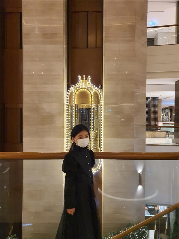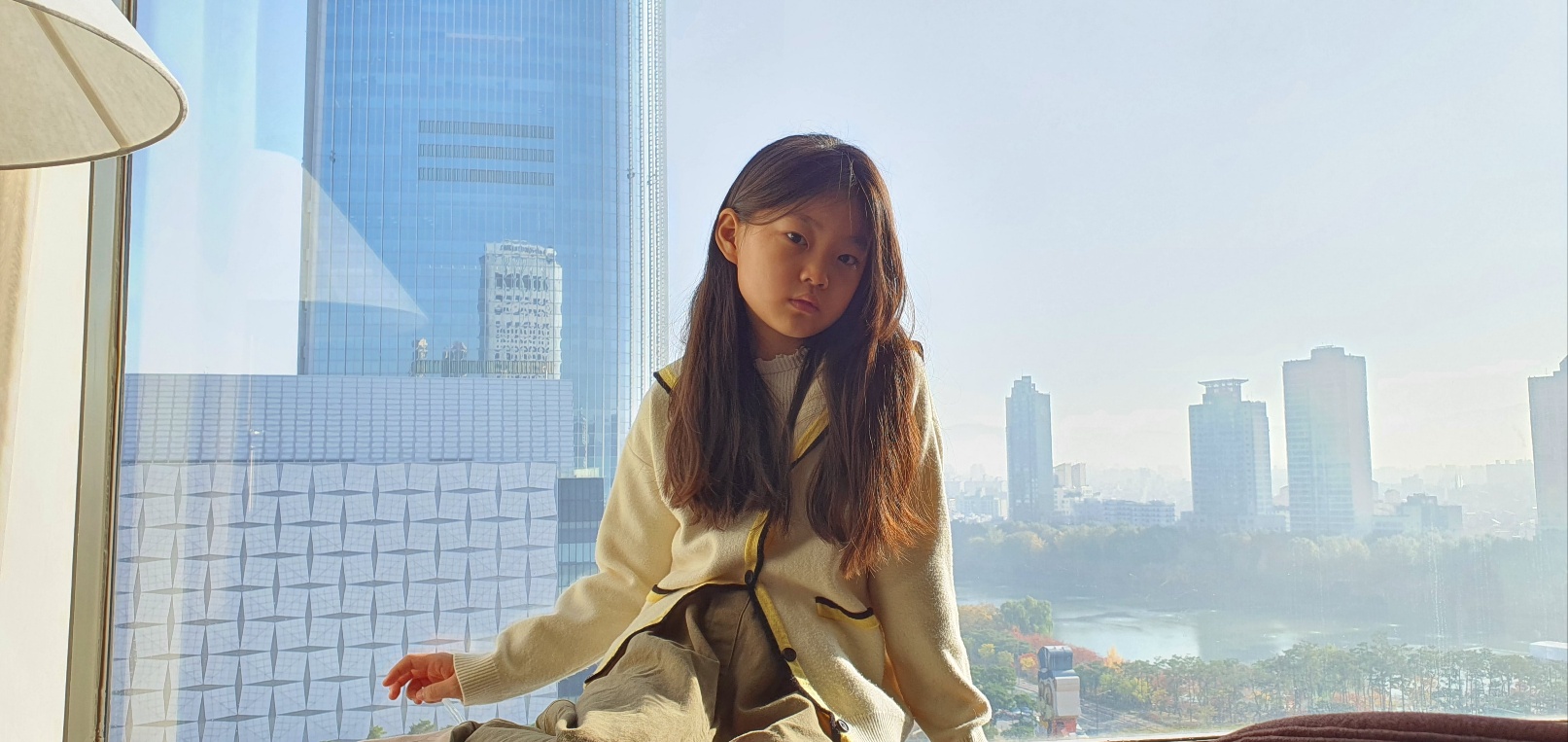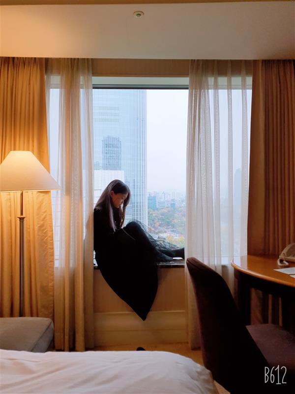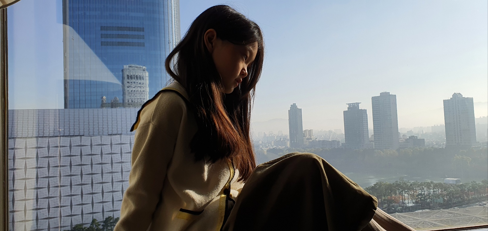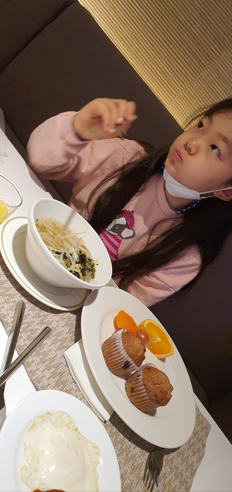 다음날 아침 조식을 먹으러 가기전 안개낀 서울의 아침을 바라보며,가평으로 떠나기전 여유를 즐기는 우리 딸 입니다. 조식 퀄리티도 꽤 마음에 들었습니다. 해외 여행갔을때 느낄수 있는 호텔조식은 꼭 먹는 편이라 참 좋았어요.