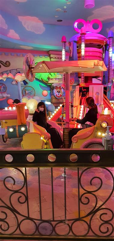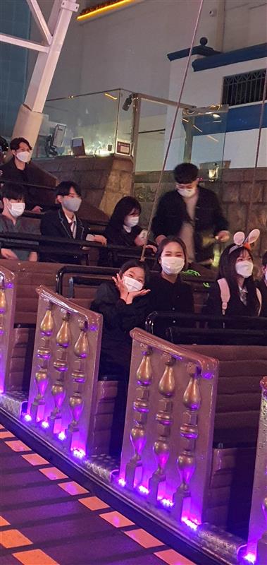 아시겠지만 롯데월드에도 야외가 있습니다. 석촌호수를 끼고 놀이기구들이 있어 모노레일로도 나갈수있고 걸어서도 갈수 있는 곳인 데요. 저는 실내보단 야외에있는 놀이기구들이 더 재미있는것 같습니다. 하지만 이날은 분장한 언니,오빠들이 너무 진짜 같다며 저위에 다리사진 찍고는 9살 우리 큰딸은 에스칼레이터타고 다같이 내려갔다가 무섭다며 오래놀지는 못하고 다시 올라왔답니다.