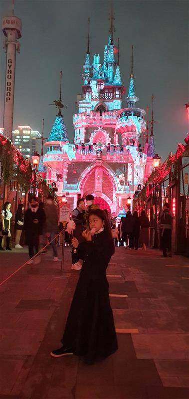 원래는 저 모습으로 다니려고했는데, 놀이기구 타고하는데 뿔이 걸리적거려서 조금 하고다니다가 벗었답니다.