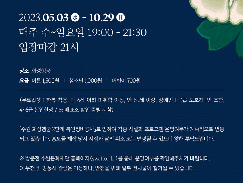 2023년 화성행궁 야간개장은 달빛화담 !!
