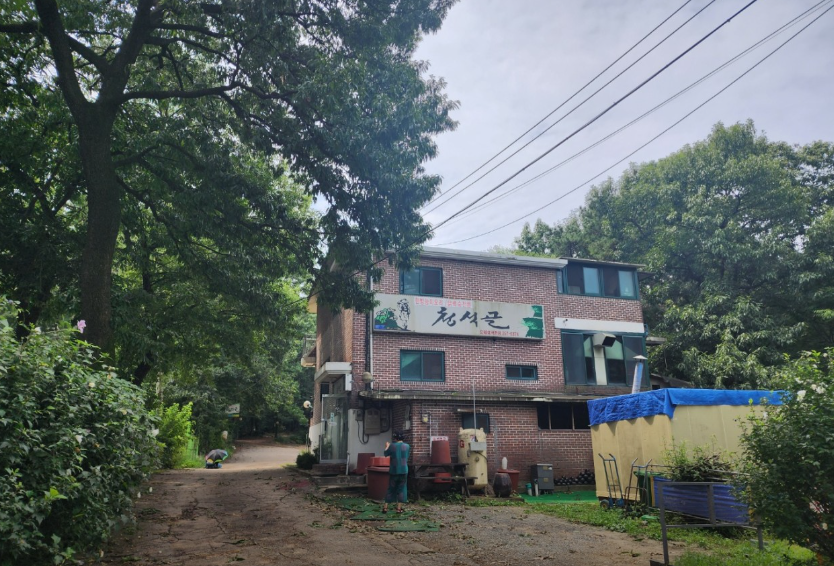 지도에 보시는 것처럼 아파트 단지 뒤로 조금 올라가는 산속에 있다 보니, 그 속에 있기만 해도 절로 힐링이 되는 공기 좋은 식당입니다. 족구장까지 준비되어 있어 단체모임에서 충분히 즐기실 수 있습니다.