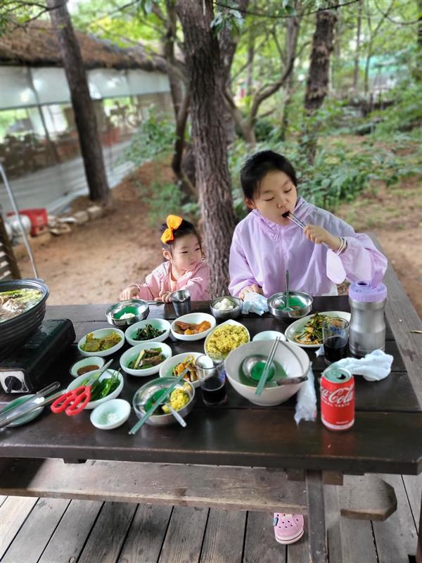 작년 이맘때쯤 지금 열심히 운동하고 있는 조기축구회인 수성 FC에서 야유회를 진행했던 곳인데, 3살 딸과 초등딸이 처음엔 메뉴가 메뉴다 보니 잘 안 먹고 싶다고 했었습니다. 하지만 정작 누룽지오리백숙이 나오고 나니 저렇게 웃으며 다 먹더라고요. 부모님과 가족 또는 회사모임 등등 모두가 만족할만한 수원 단체회식 갈만한 곳으로 청석골 추천 합니다.