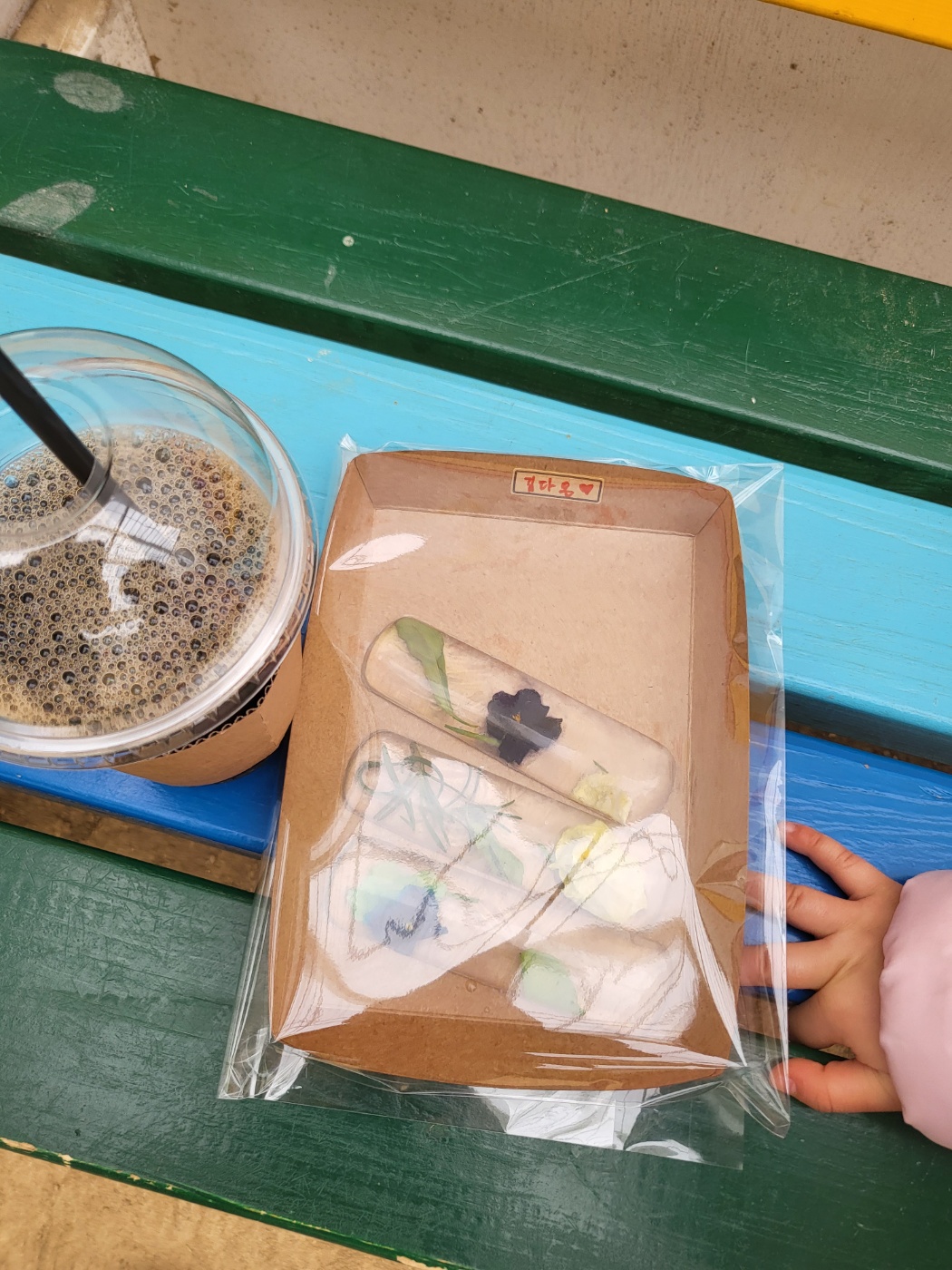 기본적으로 어른 음료와 아이 음료 간단한 간식거리가 제공되더라구요^^