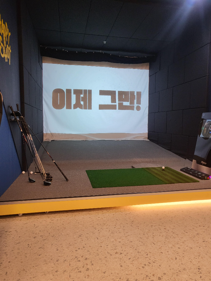 예약을 하시고나면 카톡으로 이렇게 문자가 옵니다.시간에 맞춰서 해당 티석으로 가시면 되고,스타트 버튼을 누르신 시면 설정화면이 나옵니다. 연습을 하실껀지, 게임을 하실껀지 원하시는데로 시작하시면 됩니다. 완전 처음인 분이 아니시라면 어렵지 않게 시작하실수 있어요. 골프채,골프화,골프장갑도 준비되어있어 원하시는데로 사용하시면 됩니다.