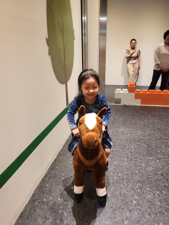 인형 승마를 해볼수 있는 공간입니다. 갈색말회색말이 있는데 갈색말은 좀 더 큰 친구들에게 맞춘 사이즈였습니다. 영상을 보셔서 아시겠지만, 단순히 말모양을 타서 밀기만 하는게 아니라 진짜 말을 타는것처럼 위아래로 움직이는게 너무 신나했습니다.