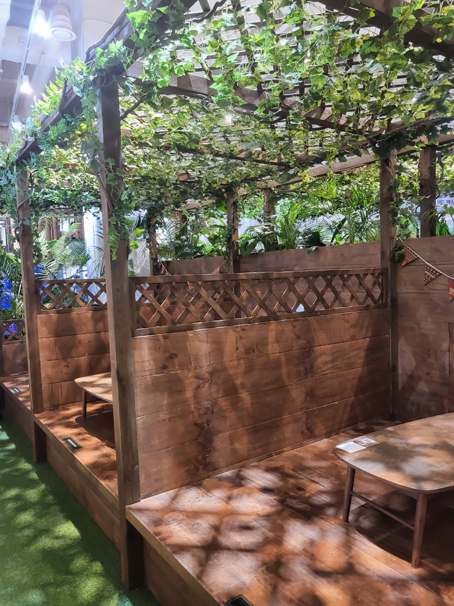 캠핑을 온것같은 분위기 테이블들도 있어요