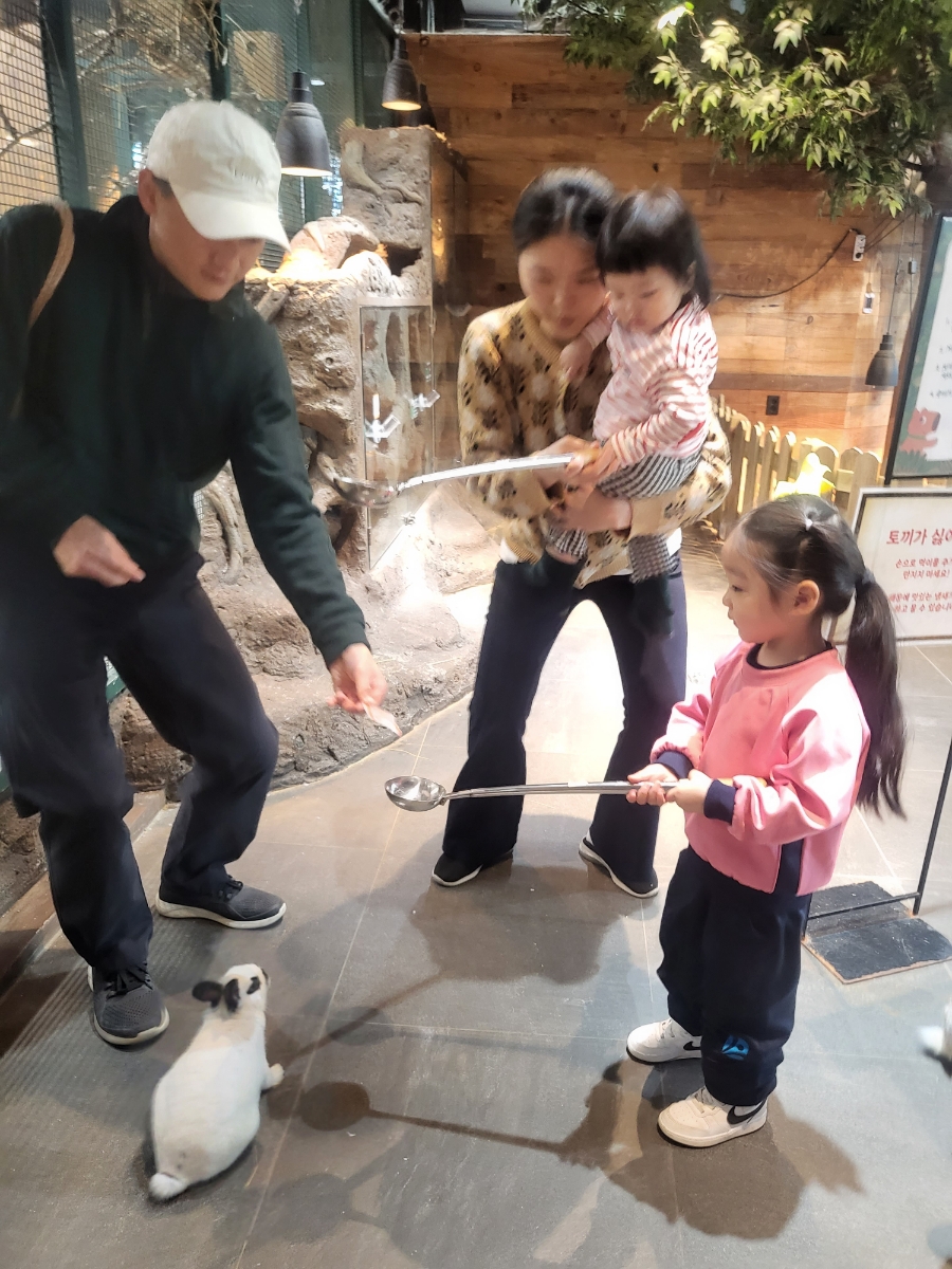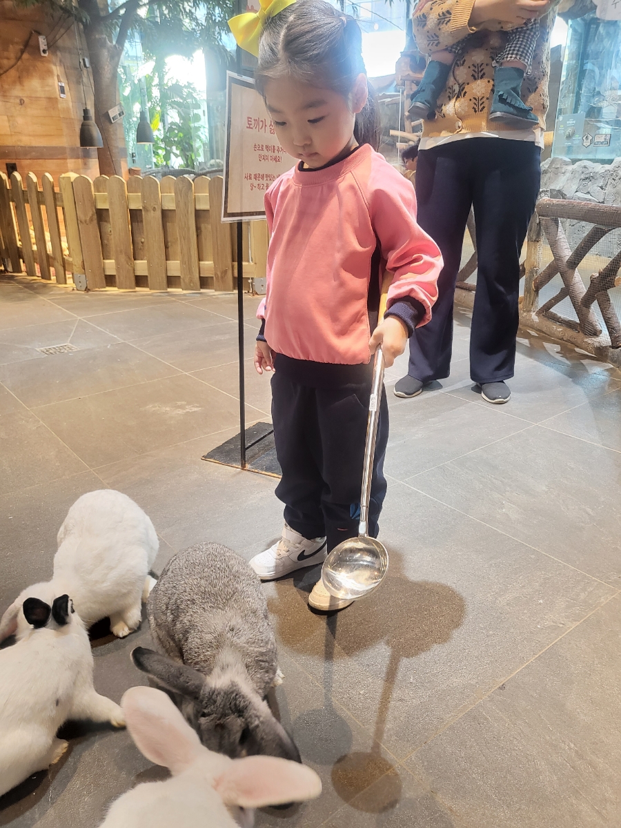 토끼들이 알아서 와서 먹는데 애들이 즐거워 합니다ㅋ