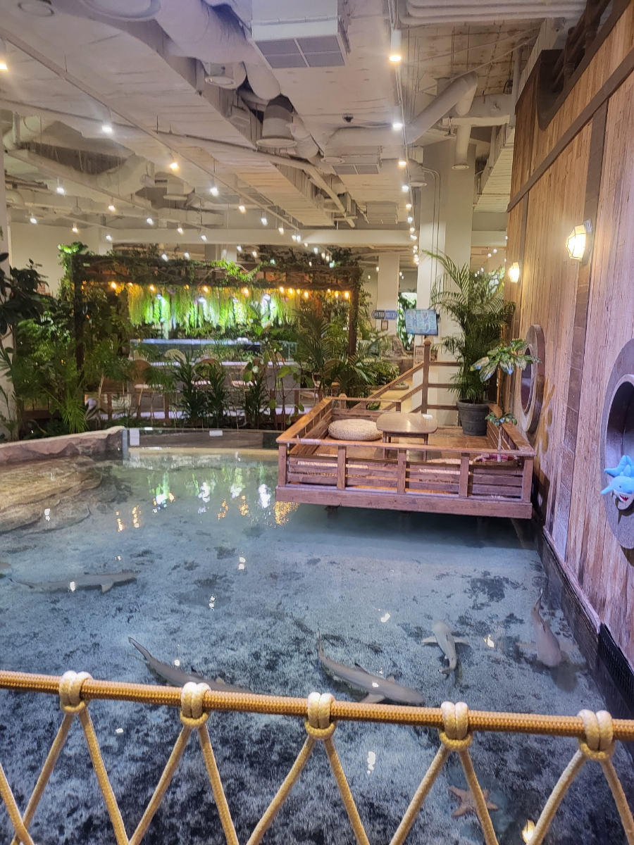 입구에 들어서면 바로 상어와 가오리가 있는곳이 보이고 생각보다 넓고 실내가 아닌 어디 숲속같은 느낌에