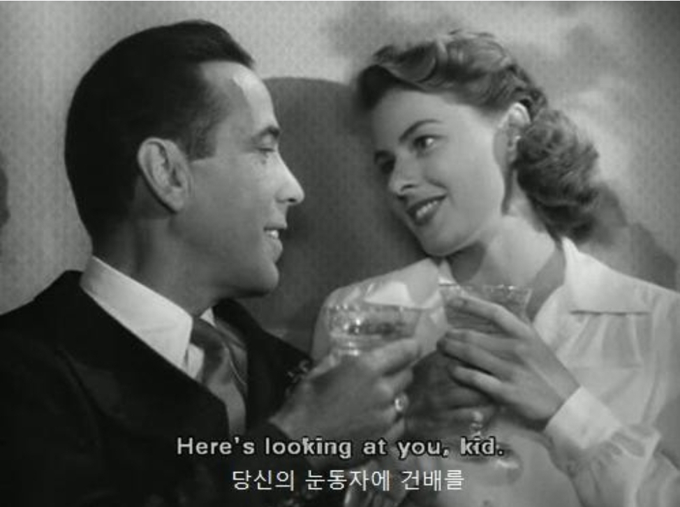 5위: "당신의 눈동자에 건배. (Here's looking at you, kid.)"