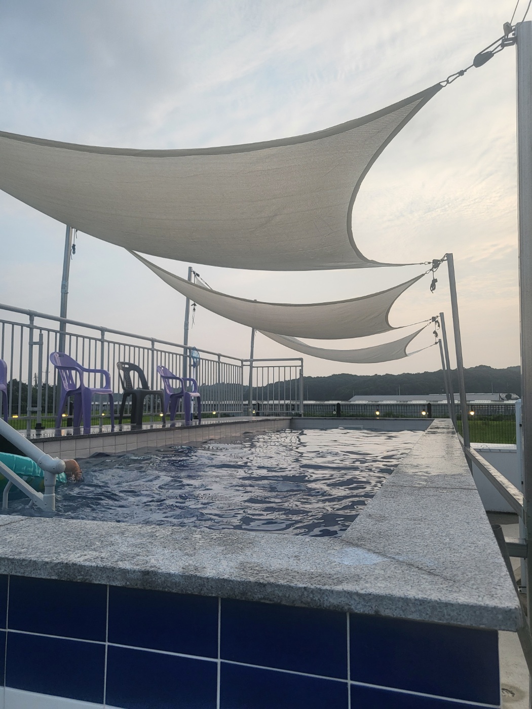 우리 타임은 저녁 6시~10시까지여서 4~7살 어린애들이 있는 저희는 아쉽지만 수영은 하지않기로 했습니다. 다른 텐트 아이들은 즐겁게들 수영하더라구요.