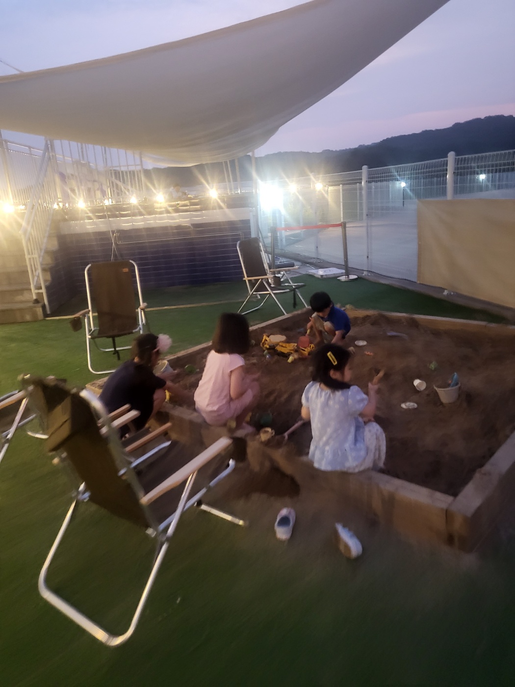 우리 타임은 저녁 6시~10시까지여서 4~7살 어린애들이 있는 저희는 아쉽지만 수영은 하지않기로 했습니다. 다른 텐트 아이들은 즐겁게들 수영하더라구요.