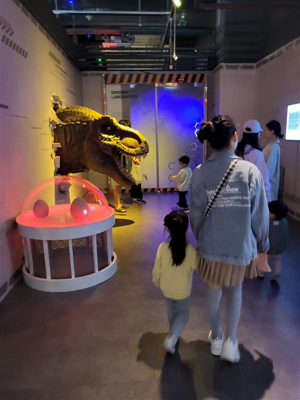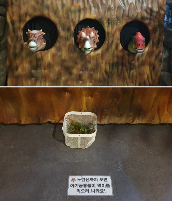 티라노사우르스 머리가 움직입니다. 이곳이 첫 입구인데 우는아이도 있고, 즐거워 하는 아이도 있어요. 겁이 많은 아이라면 미리 품에 안고 가시길 바랍니다.