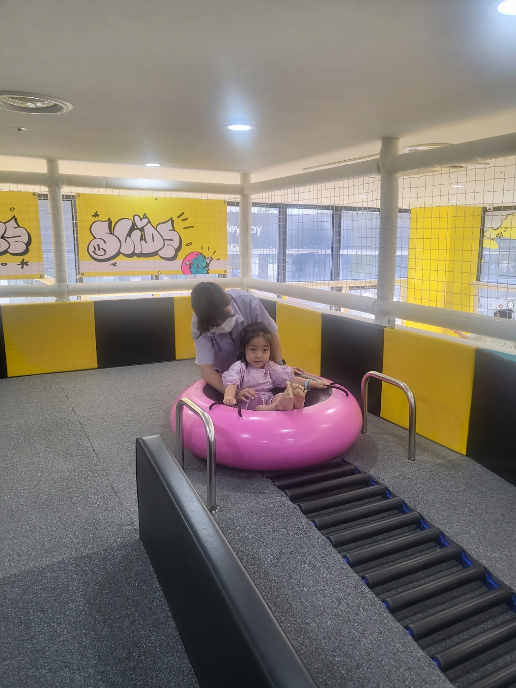그냥 미끄럼이 아닌 튜브를 타고 내려오니 워터슬라이드 같은 느낌이 나는지 무척 신나했습니다.ㅋㅋ