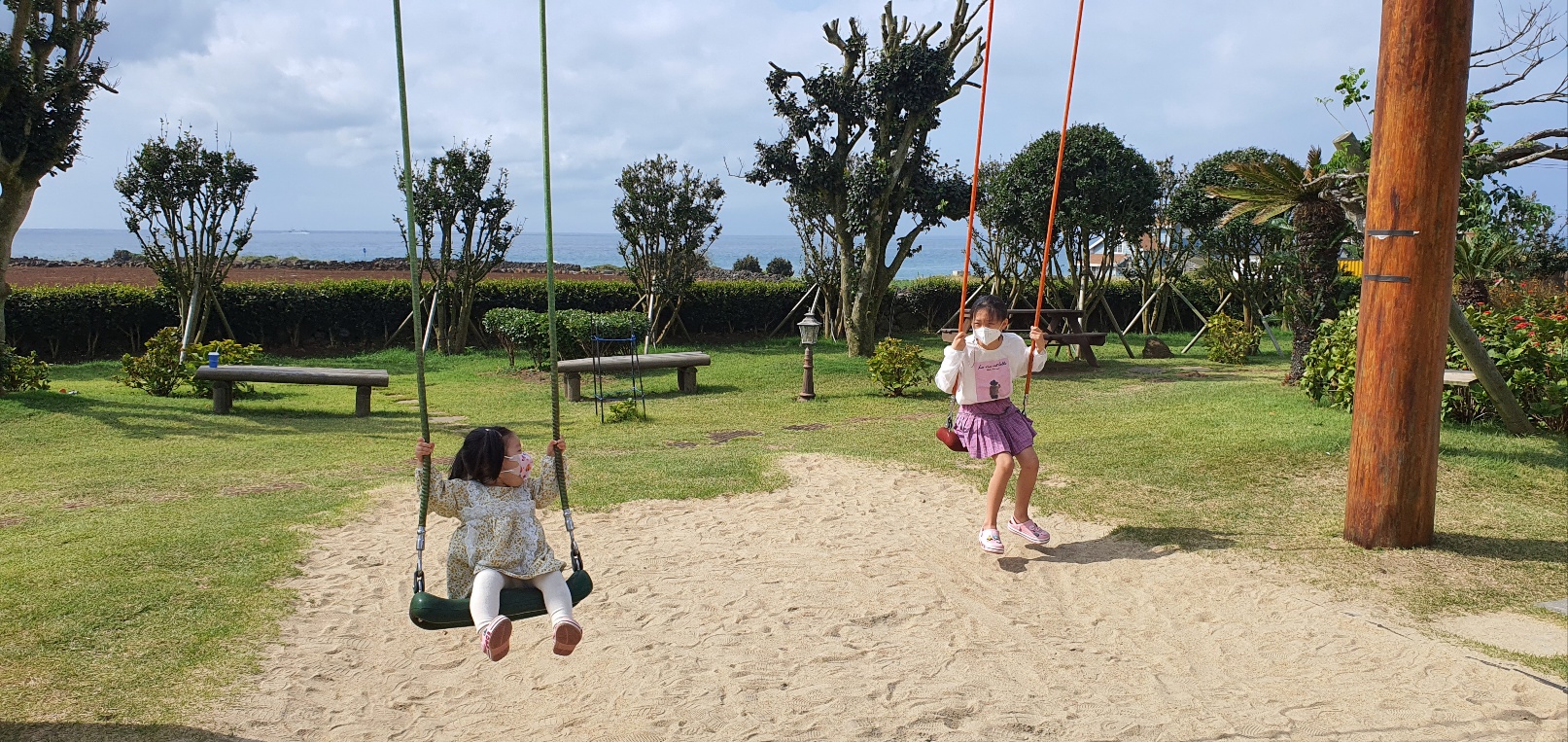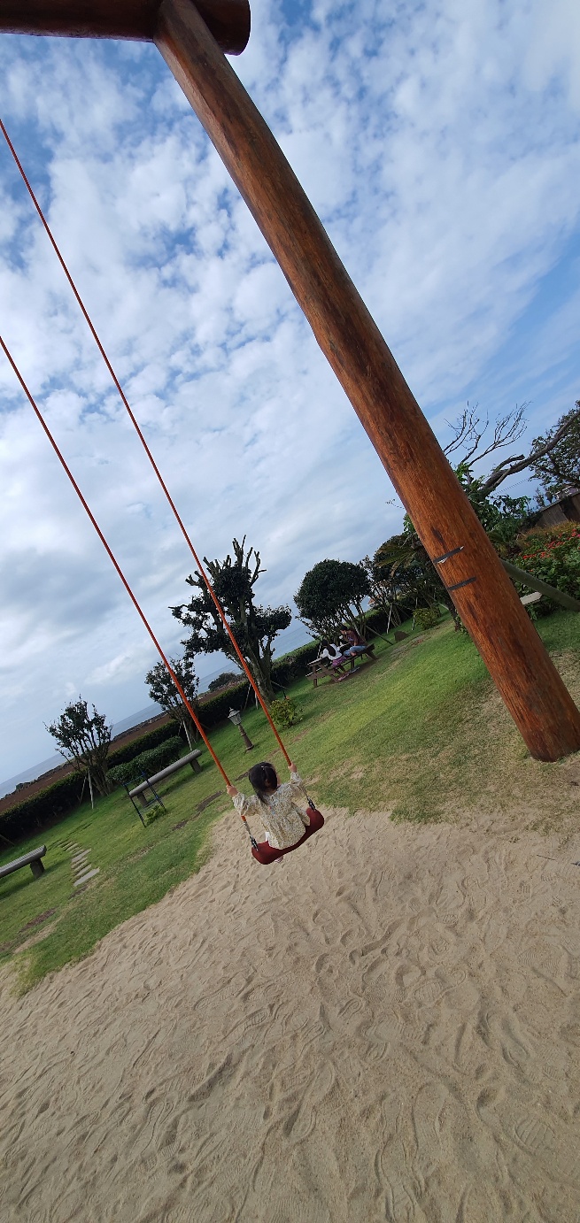 그네를 타면 오션뷰가 한눈에 확 들어오는데 정말 이쁩니다. 구름도 바람도 잠자리도 정말 어느것 하나 미쁜제과에 온걸 잘했다는 생각만 들게하는것들 뿐입니다