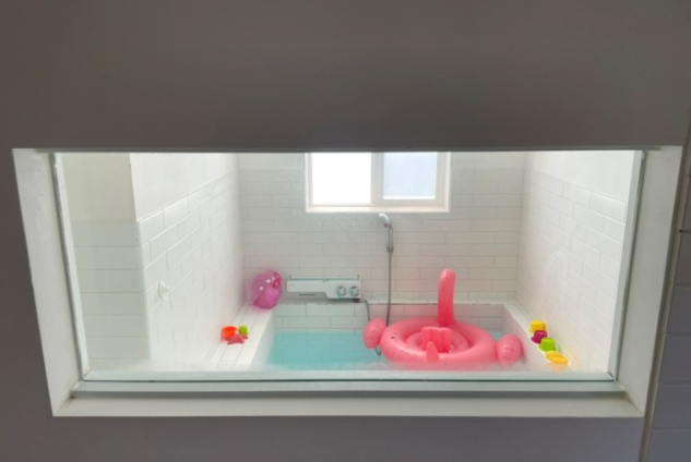 그렇게 깊지 않고 보시는 것처럼 언제든 물을 직접 담아 원하는 온도로 아이들이 즐길 수 있어서 좋습니다. 주방창문을 통해서 안을 들여다볼 수도 있어서 아이들이 놀게 하면서 부모님들도 좀 휴식하시기에도 괜찮습니다.