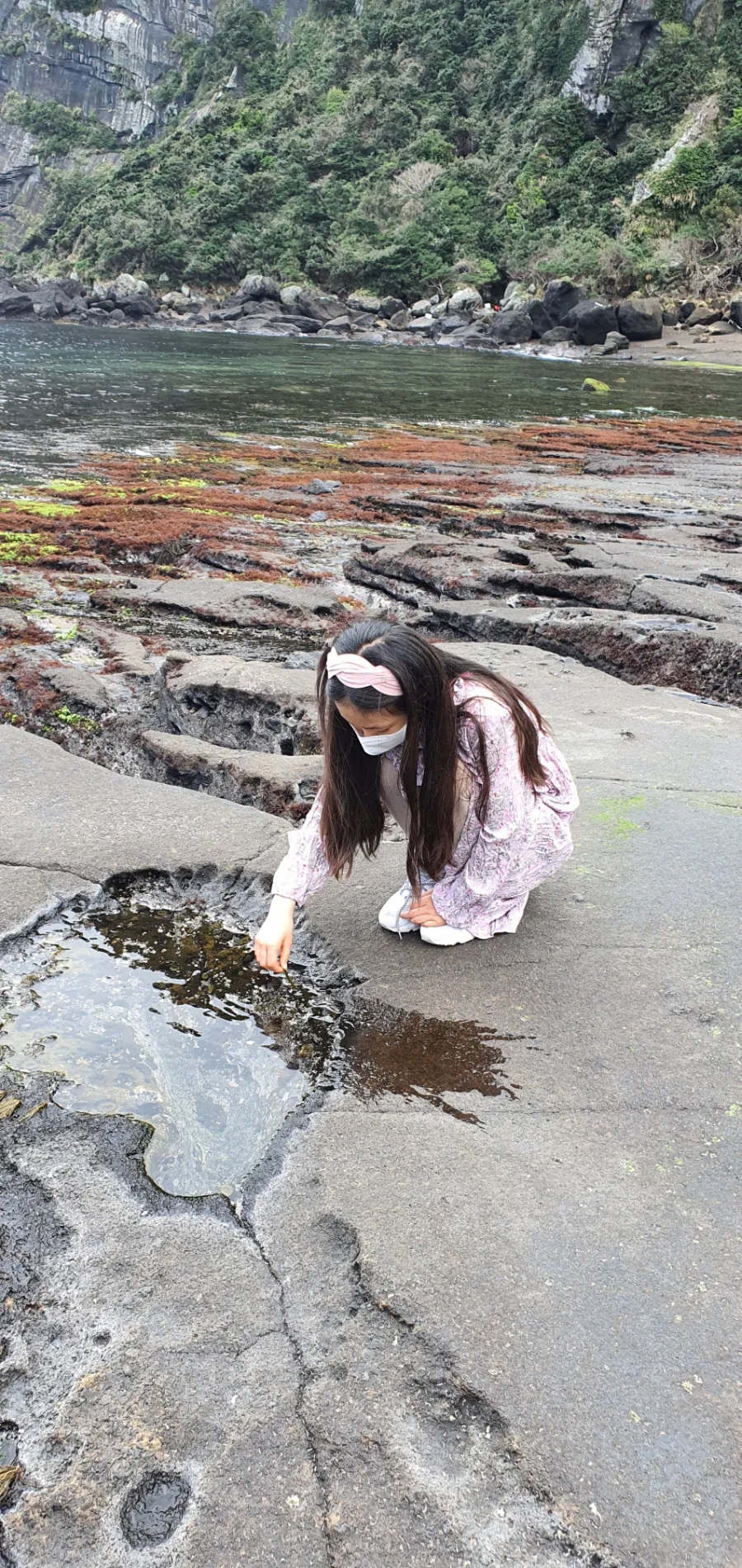 성산일출봉 밑으로 내려가면 해녀의 집도 있더라구요. 계단에서 찍어도 예쁜사진이 나옵니다. 바다도 바위들도 이쁘고