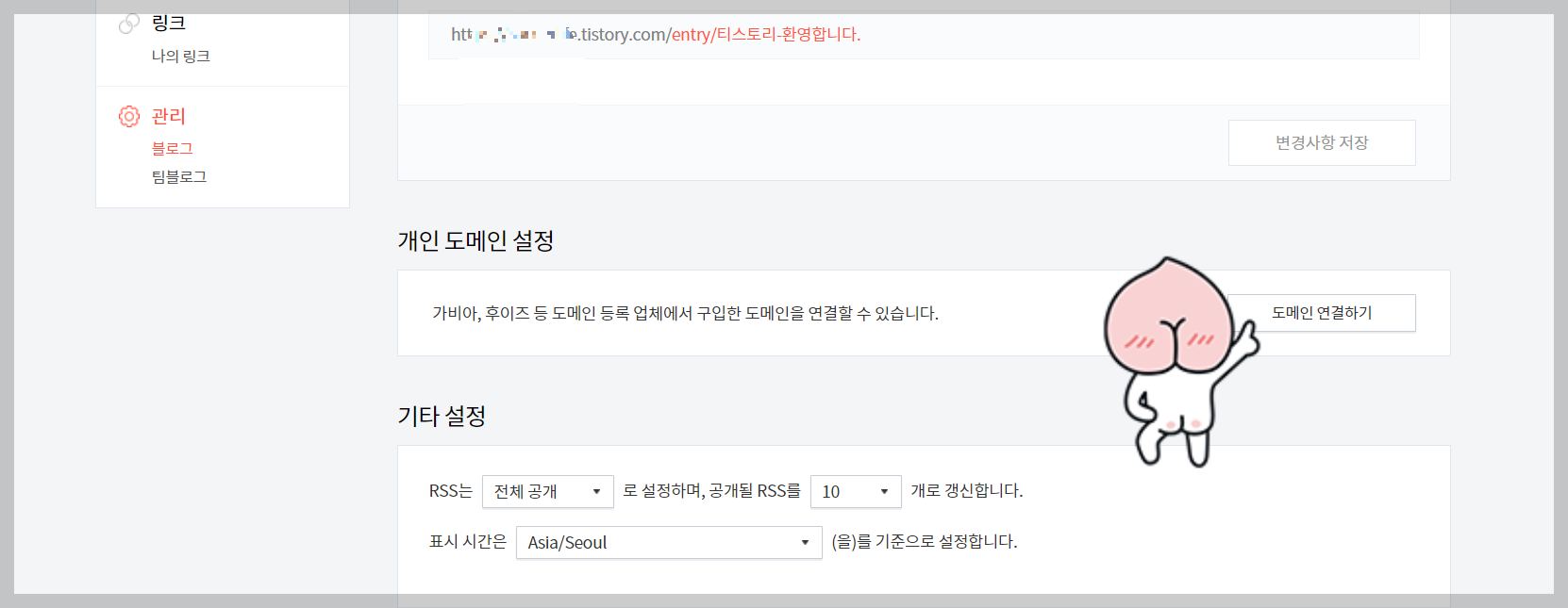 2. 중간 단락에 있는 개인 도메인 설정탭에서 도메인 연결하기 클릭 합니다.