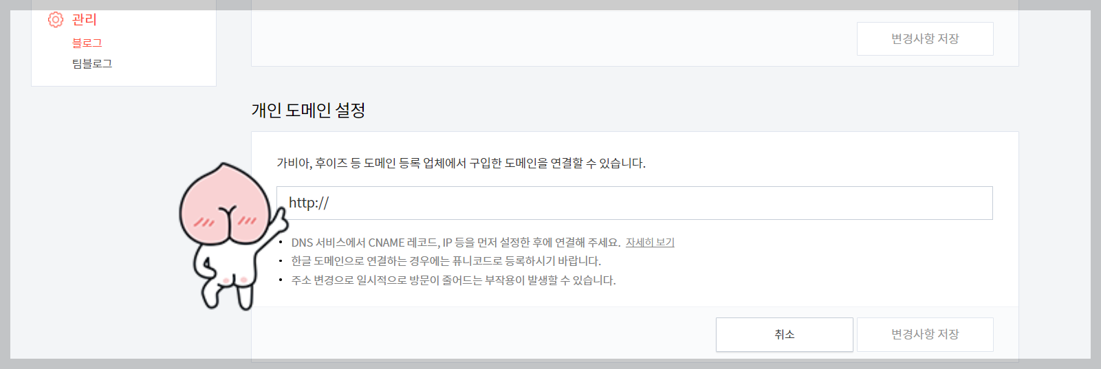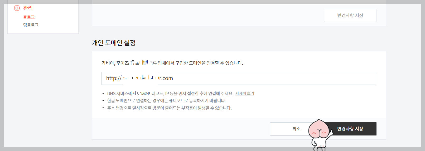 4. 도메인 입력 후 우측하단에 변경사항 저장 클릭