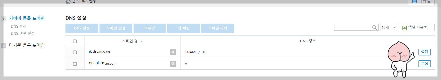 3. 가비아에서 만든 도메인들을 입력하시면 됩니다.