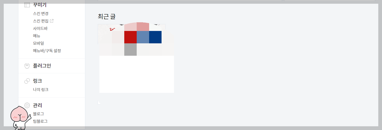 1.티스토리 관리자에 접속 후 좌측 제일 하단에 관리에서 블로그를 클릭 합니다.