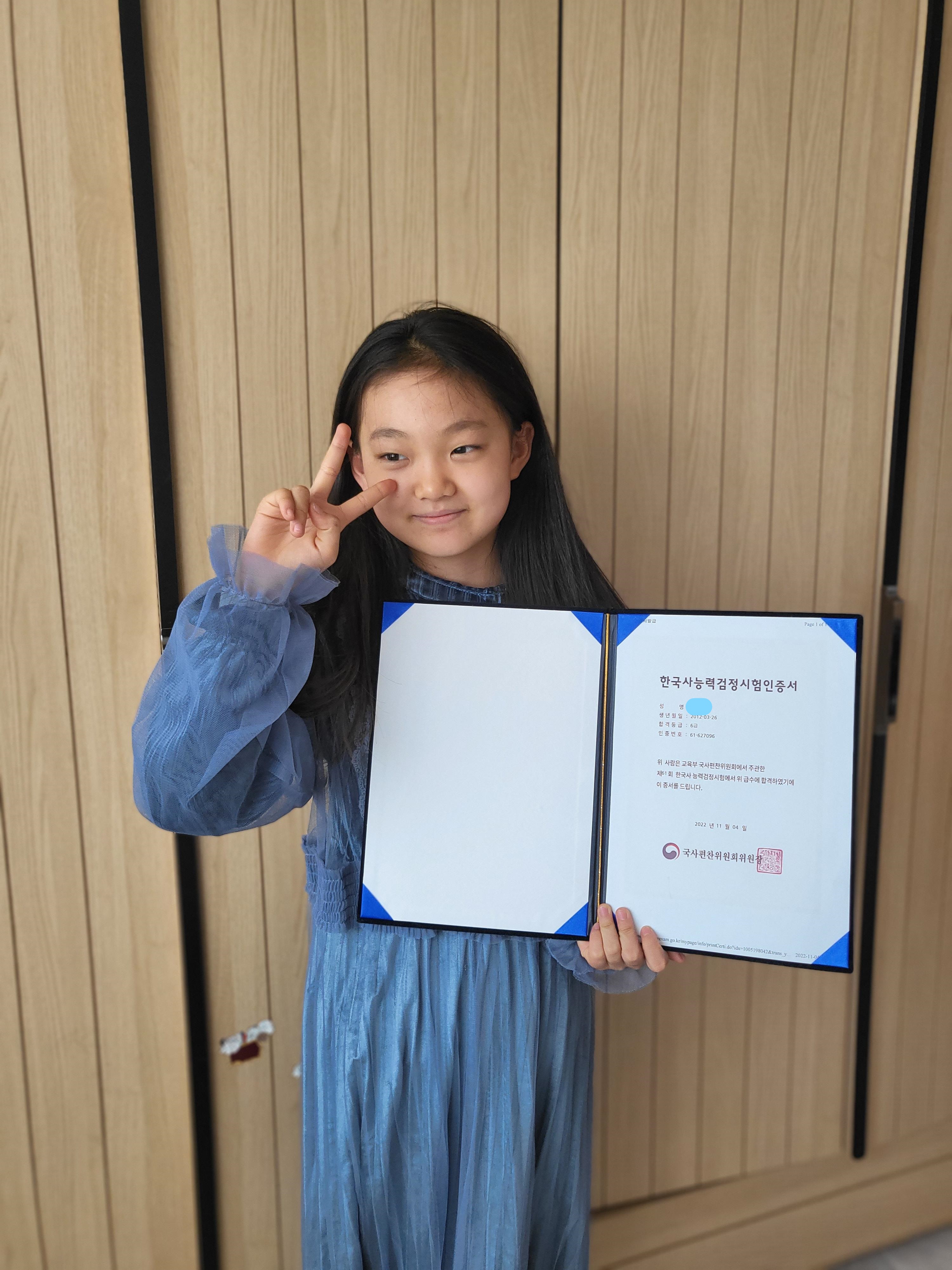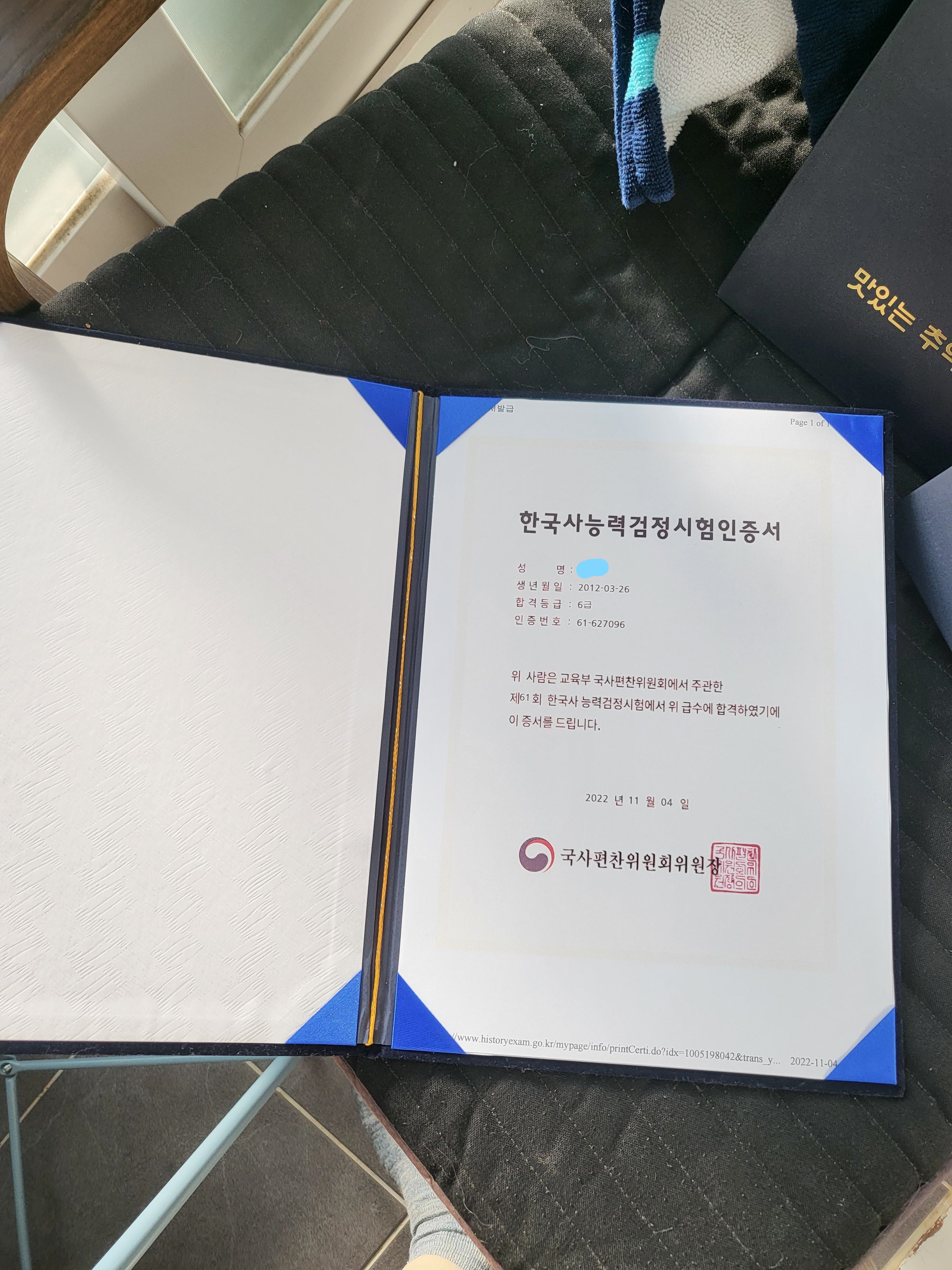 바로 내껀 빼버리고 우리딸 한국사능력시험인증서를 넣었다.