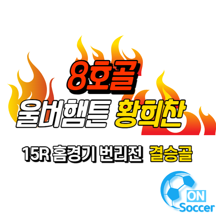 울버햄튼 홈구장인 몰리뉴 스타디움에서 2023-24시즌 15라운드 경기였는데요. 저번경기 14R 아스날전 1:2 패배와 13R 풀럼전 황희찬이 PK유도와 직접 PK골까지 황희찬 7호골까지 넣었으나 아쉽게도 2:3 패배로 자칫 가라앉을 수 있는 팀 분위기를 이번 번리전 전반 42분에 터진 황희찬8 호골이자 결승골로 다시 상승시켰습니다.