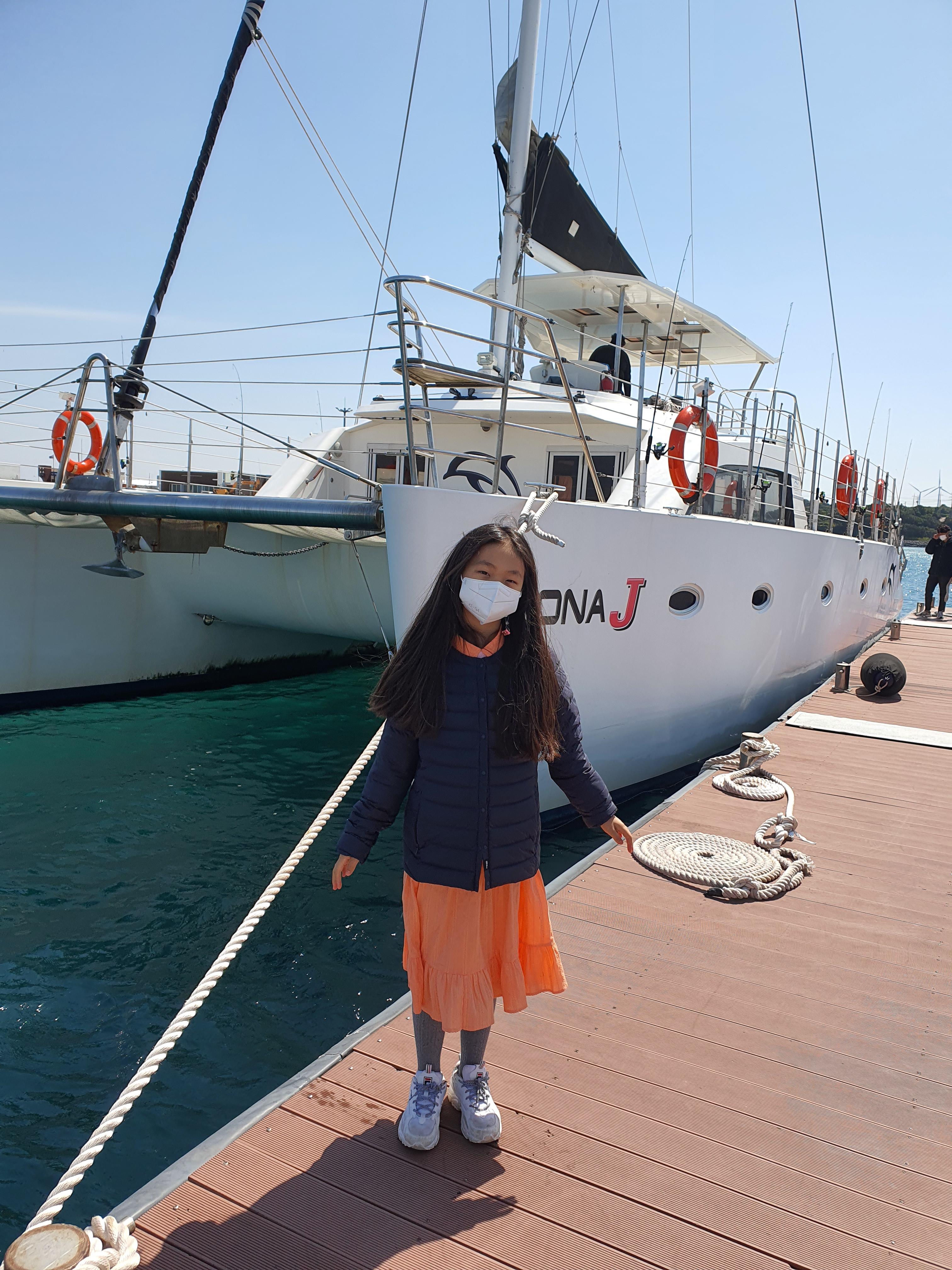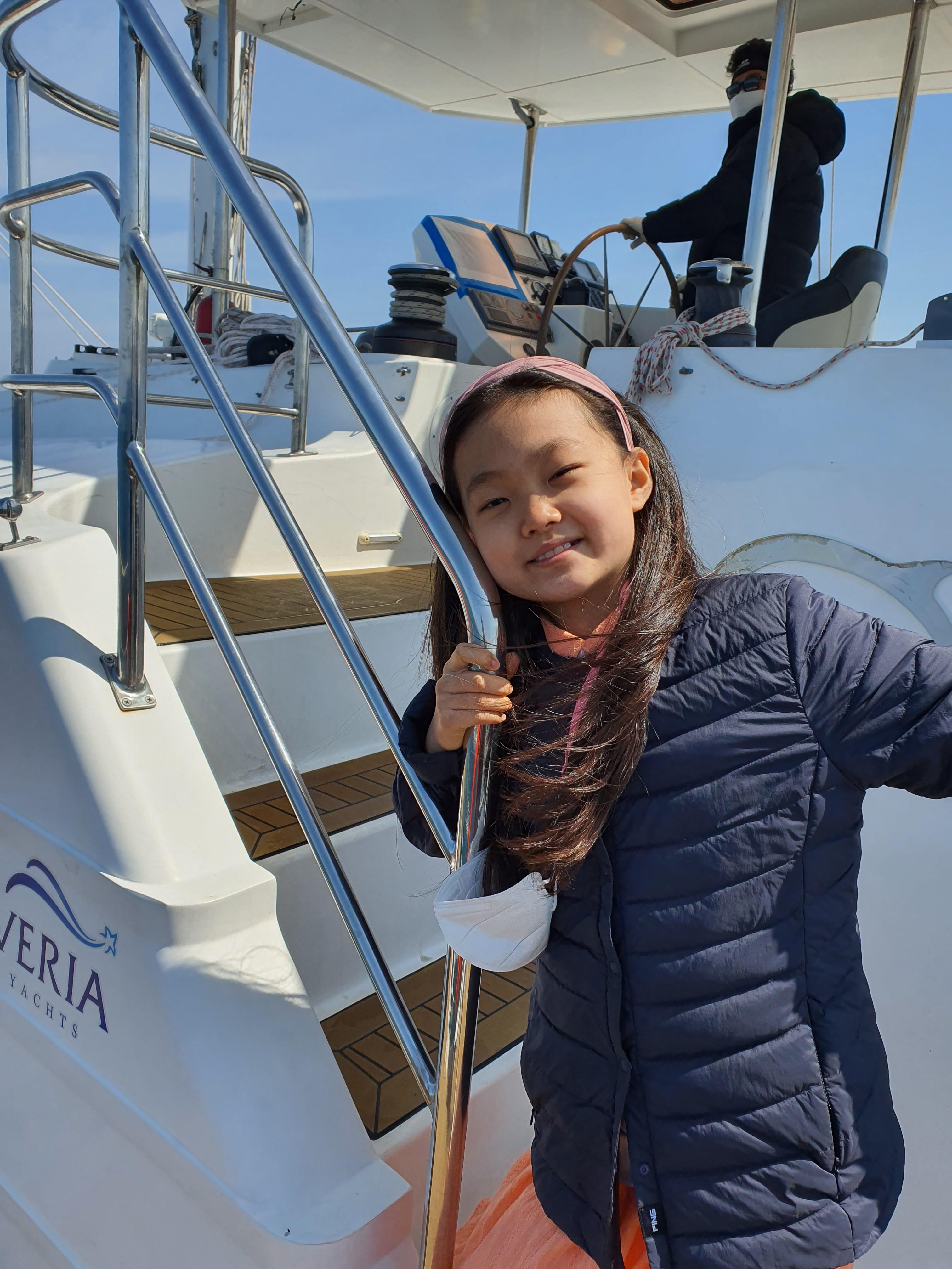하지만 이때는 마스크를 쓰고 있는 사진을 보면 아시겠지만 코로나시절이라 회와 와인을 즐기지는 못했지만 간단한 다과는 준비가 되어 있어 먹으면서 요트를 탈 수 있었습니다.